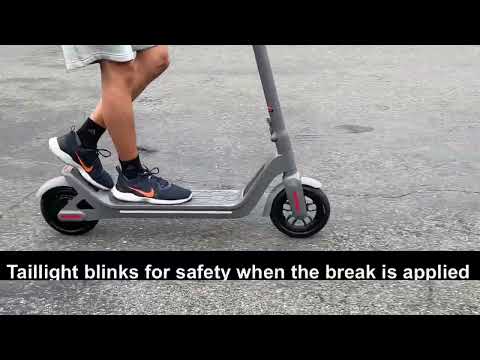 Front headlight for night time riding and taillight that blinks when the break is applied are all great safety feature. The right handle has the thumb throttle to activate the motor and left handle has the hand break like the ones in bicycles. The LCD screen is very easy to see and you can double press the button to switch mode from L (low), M (medium), and H (high) speed. This is great since you can cap the max speed depending on your need, for example, you can ride at Low mode while walking with someone. I also love the folding design with slide-in latch to secure the bar to the platform so you can carry it with one hand.