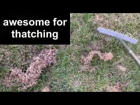 We have so many dead grass patches in our lawn and I try my best to water them and to seed them but I've read that you need to thatch out the old dead grass in order to be successful with new grass seeding and fertilizing. I used to do this with leaf rake until I found out that they have a thatch rake specifically design for this purpose so I decided to give this a try and I am simply amazed how well it works.