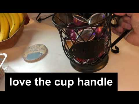 It's so pretty and elegant looking, with the "COFFEE" label outside the holder. We also love the handle so we can easily take out the the cup holding all the coffee pods out of the kitchen cabinet on to the countertop and the large opening as well as see through design allows us to easily see and find the flavor we want, without removing all the pods on top.